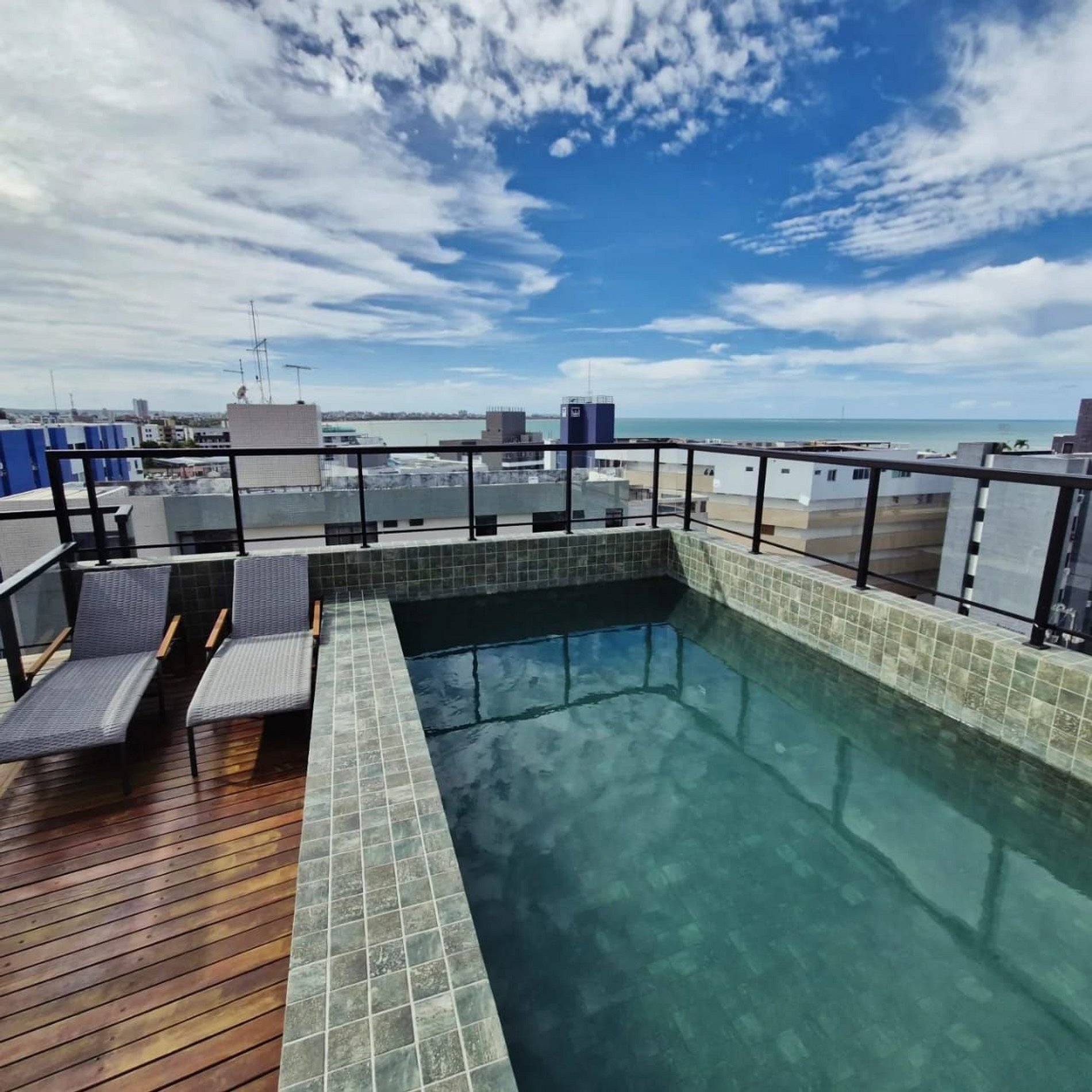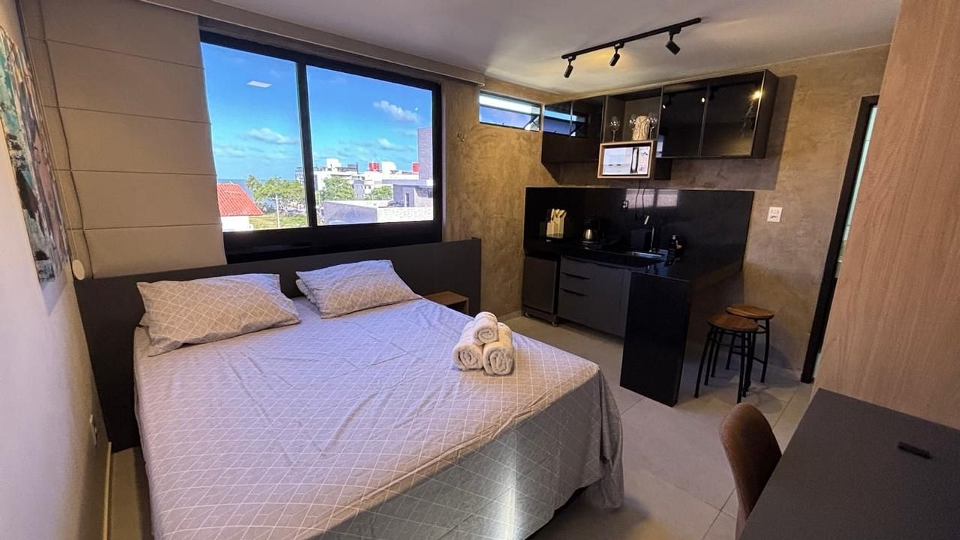 Desfrute de uma estadia relaxante no coração do Bessa! Localizado a poucos passos do mar, este aconchegante refúgio oferece todas as comodidades modernas: ar condicionado, TV, Wi-Fi gratuito e uma mini cozinha bem equipada. Desperte para vistas deslumbrantes e aproveite a piscina panorâmica no rooftop. Com a gestão profissional da Day Imóveis PB, seu conforto é garantido. Perfeito para relaxar ou explorar, próximo a mercados, padarias e lojas.